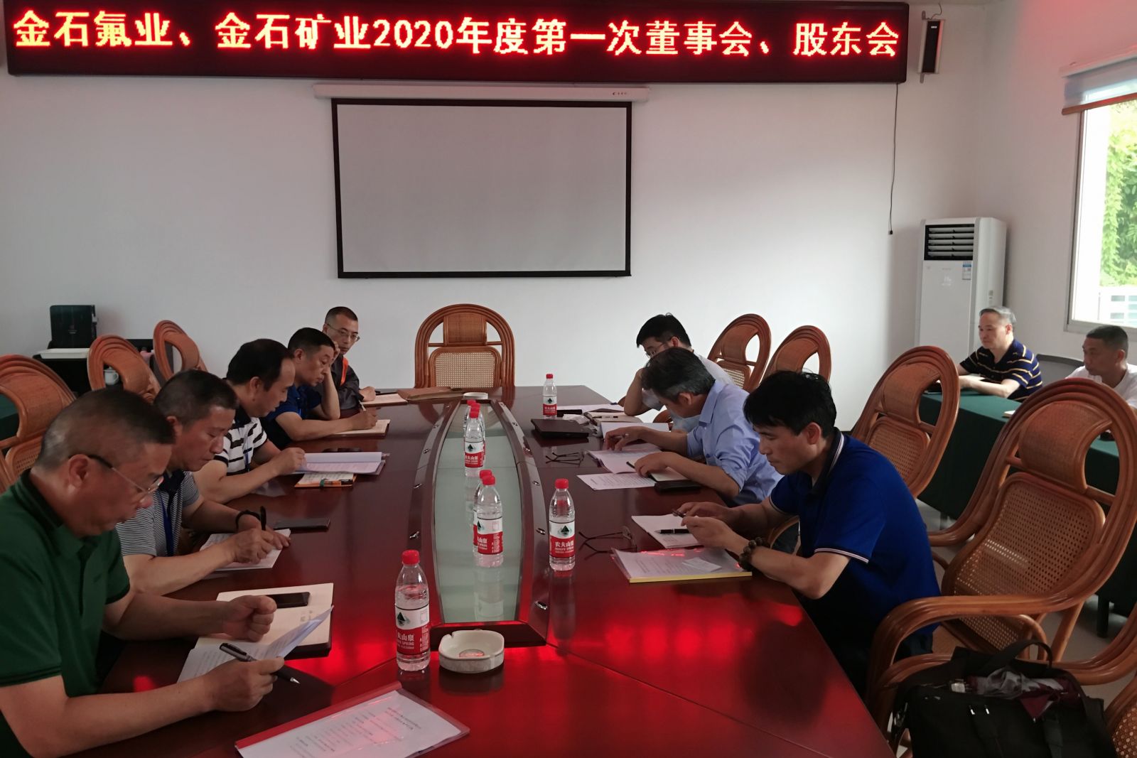 2020年6月8日下午1:30,在綜合樓三樓會議室召開公司2020年第一次董事會、股東會,公司全體董事及各股東出席會議。會議協(xié)商表決了金石氟業(yè)、金石礦業(yè)公司各項(xiàng)重大生產(chǎn)經(jīng)營事項(xiàng)。