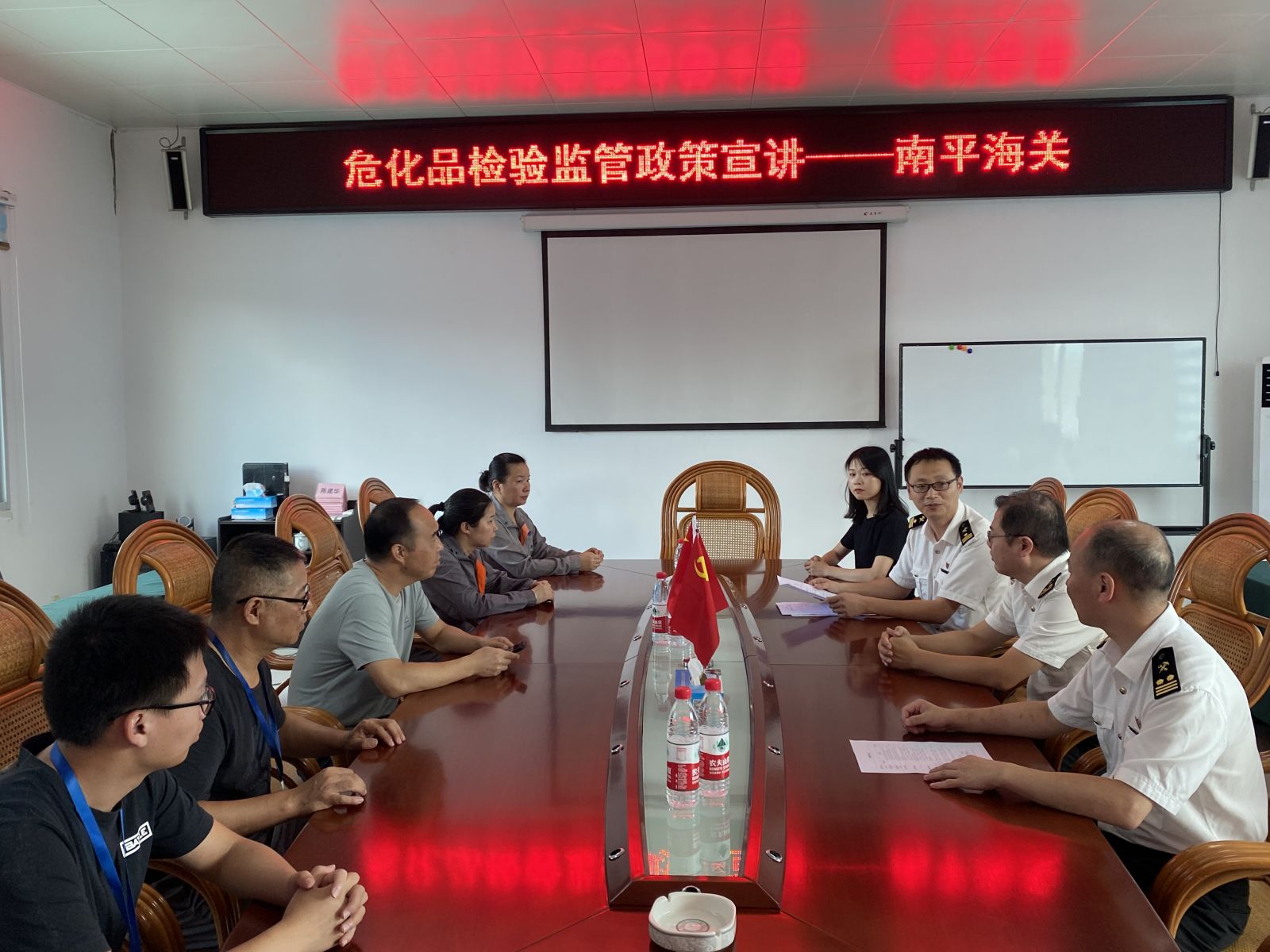 2021年07月20日上午10:00左右,南平海關(guān)副關(guān)長(zhǎng)陳俊穎、南平海關(guān)查驗(yàn)科一科領(lǐng)導(dǎo)黃云好、林鼎杰一行蒞臨我司做危化品檢驗(yàn)監(jiān)管政策宣講、危化品業(yè)務(wù)交流及管理體系認(rèn)證審核。
